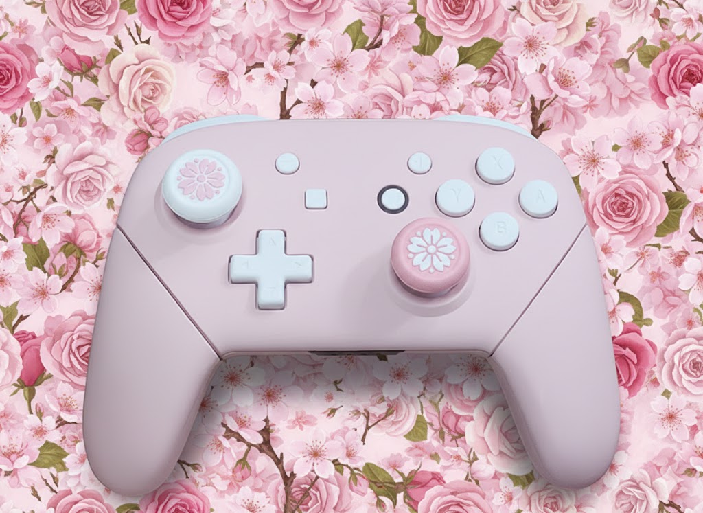 Custom Nintendo Switch Pro Controller Sakura Pink with White Button